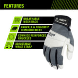 Combining the durability, feel, and quality of leather work gloves with a modern fit and performance of new synthetic materials, AWP Hybrid Cowhide General Purpose work gloves provide enhanced puncture and abrasion resistance in a strong, yet comfortable hybrid design. Grain cowhide leather protects the knuckles and fingertips, while a synthetic, spandex mesh back delivers improved breathability and superior dexterity for all-day comfort.