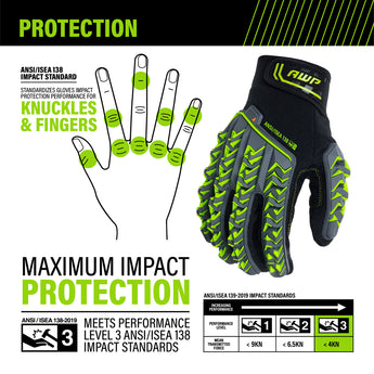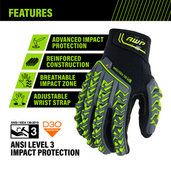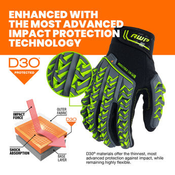 Enhanced with D3O® technology, the world’s thinnest and most advanced impact absorbing material, AWP Max Impact work gloves deliver cutting-edge, industrial grade impact protection.