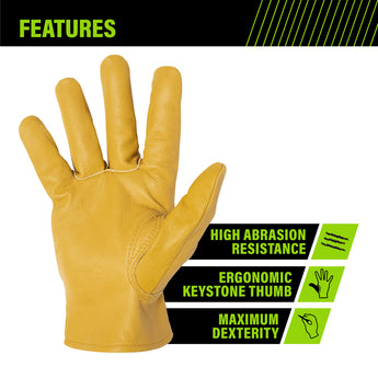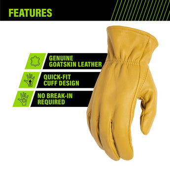 Crafted from genuine, top-grain leather and designed for comfort, AWP Grain Leather Goatskin work gloves are also highly durable, with excellent tear and abrasion resistance. Requiring no break-in period, these work gloves are soft and supple with an ergonomic, keystone thumb design that provides more flexibility and a quick-fit cuff for easy on and off.
