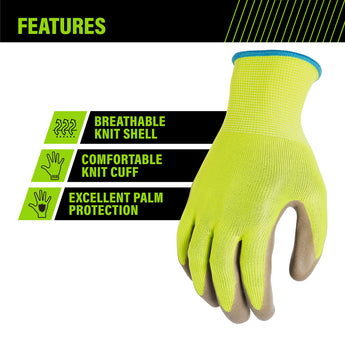 Ideal for DIY and home projects, AWP Honeycomb Latex work gloves are a great choice for a wide variety of tasks. The durable, textured palm provides excellent dry grip in messy conditions, capturing dirt, grit, and grime in the honeycomb cavities, while the breathable knit shell for all-day comfort so you can focus on the task at hand.