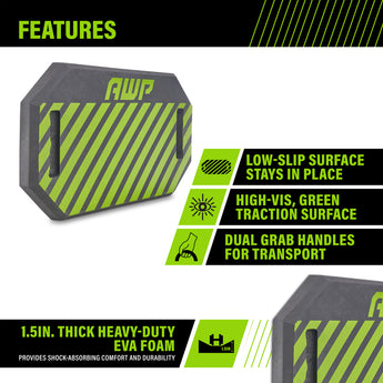 Ideal for electricians, carpenters, mechanics, plumbers, flooring, gardening, and more, the AWP Kneeling Pad delivers shock-absorbing comfort at only 1.5 inches thick. Constructed from a heavy-duty EVA foam padding, it provides a low-slip surface that stays in place while you work. Dual grab handles make it easy to transport or hang in the shop when not in use.