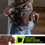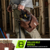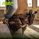 Crafted from genuine suede leather, the AWP Suede Leather Tool Apron has rivet-reinforced stress points and rolled, double-stitched pocket edges for enhanced durability. The suede leather delivers on comfort for long hours on the job and conforms to your tools and fasteners. The roller belt buckle allows for easy size adjustments and quick on and off.