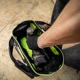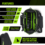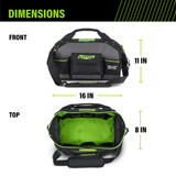 Featuring the innovative, spring-loaded technology from AWP, the 16 in. TrapJaw Tool Bag combines the accessibility and efficiency of an open tool tote and the security of a zippered bag in one tool storage solution. The patented spring-hinge design snaps open for one-handed tool access and snaps closed preventing tool spillage. Constructed of a rugged, water-resistant fabric with reinforced wear points and molded feet for durability, this bag also features lockable pull handles for added security.