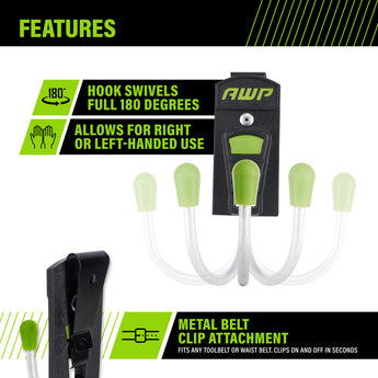 Perfect for holding most cordless drills, nail guns, saws, landscaping tools, and many other large items, The AWP Monster Tool Holder redefines versatility on the jobsite. The 180-degree swivel accommodates both right and left-handed users and provides easy access to large tools. The metal clip makes for quick attachment to your tool belt.