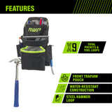 Made to keep your essential tools and fasteners organized and readily accessible, the AWP Carpenter Tool Pouch features the innovative, spring-loaded TrapJaw technology on the front pouch. The TrapJaw pouch snaps open wide to provide easy-access and snaps closed to secure small tools and fasteners inside. The Carpenter Tool Pouch has a 4-tier professional design for maximum organization and includes a steel hammer holder.