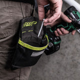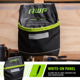 Incredibly convenient for large or small projects, the AWP Clip-On Fastener Pouch features the innovative, spring-loaded TrapJaw technology that snaps open wide to provide easy-access and snaps closed to secure small tools and fasteners inside. Constructed with water-resistant 600 denier polyester, it’s also reinforced at wear points for long-term durability. The write-on panel allows you to label contents of your pouch for easy identification. Includes a metal belt clip for easy on-and off or can be threaded on your tool belt with the tunnel loop attachment.