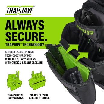 - 5 TrapJaw™ pouches snap open and closed for easy access and secure storage