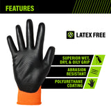 - Textured polyurethane coating provides a superior grip in wet and oily conditions
