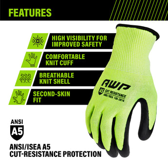 Designed for conditions where sharp edges are involved, AWP Cut-Resistant work gloves provide serious industrial grade, ANSI A5 level cut protection, resisting cuts and punctures while maintaining a superior grip in wet or dry conditions. Whether working with sharp blades, rough metal, or glass, these are the perfect work gloves to keep in your toolbox, tacklebox, in your shop, or in your car.