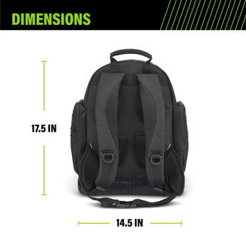 Tough and mobile for the pro on the go, the AWP Extreme Tool Backpack keeps your gear organized for a full day on the jobsite. Constructed with rugged, water-resistant 600 denier polyester and 1680 denier reinforcements, this backpack has a waterproof, molded bottom that provides a solid base to keep it standing while you work. Designed for comfort, the air-mesh padded back, straps, and waist belt make for an easy carry. The 4 zippered compartments and 23 pockets provide optimal tool organization.